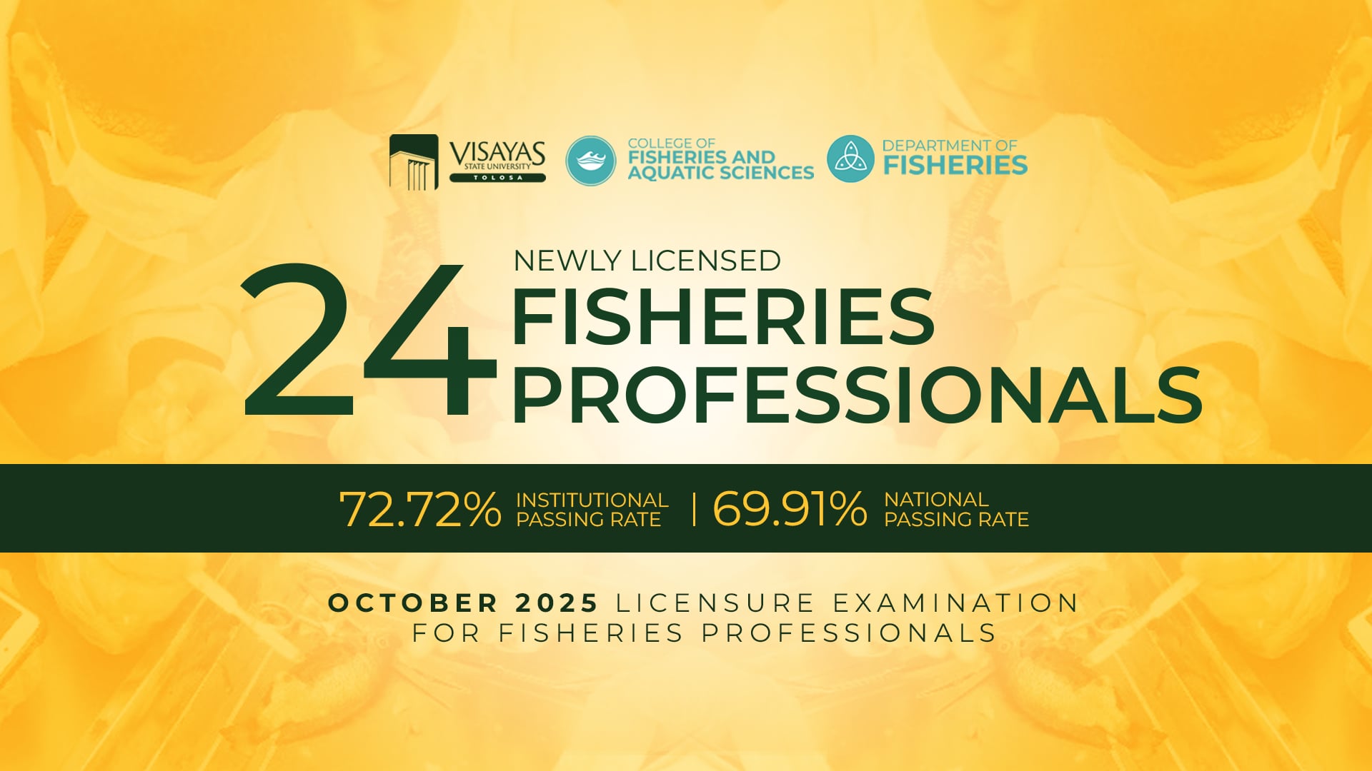Twenty-four (24) graduates from Visayas State University Tolosa passed the October 2025 Fisheries Professionals Licensure Examination, according to the results released by the Professional Regulation Commission (PRC).